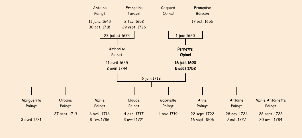 Pernette Opinel apparait dans le recensement de la population de 1716. |
