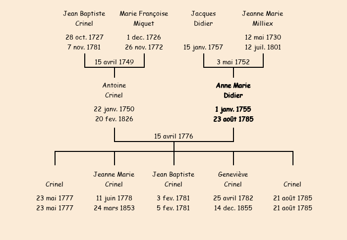Epoux : Antoine Crinel, fils de Jean Baptiste |