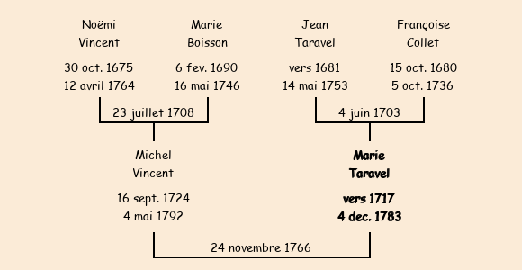 Mariée (49 ans) avec Michel Vincent (42 ans) le 24 novembre 1766 à Fontcouverte ![]() |