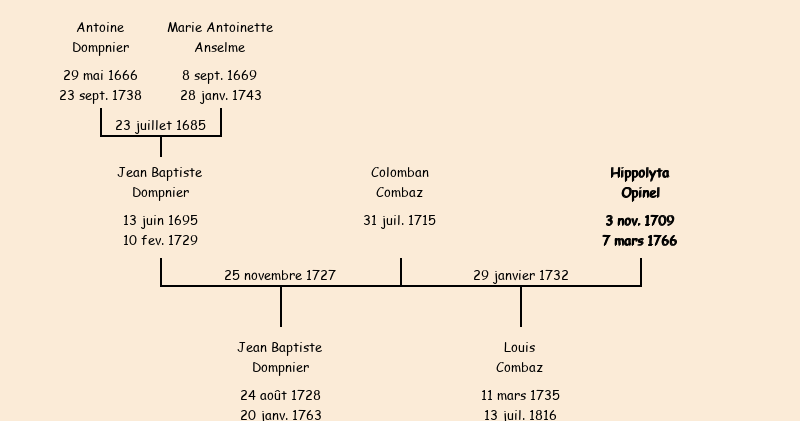 Epouse : Hippolyta Opinel (d'Albiez le Vieux, veuve de Jean Baptiste Dompnier fils d'Antoine égrège notaire), fille de Jean Pierre |