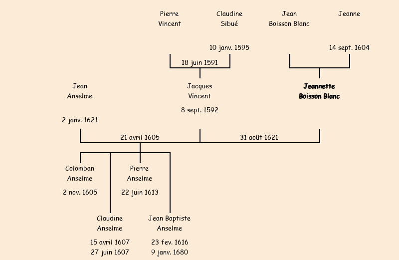 Mariée avec Jacques Vincent (28 ans) le 31 août 1621 à Fontcouverte ![]() |