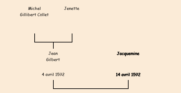 Jacquemine (épouse de Jean Gilbert) est marraine d'un enfant Jean Pierre de Claude. |