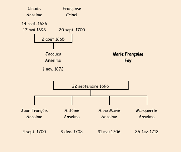 Epoux : Jacques Anselme (habitait Saint Jean depuis 5 ans), fils de Claude (égrège, notaire) |