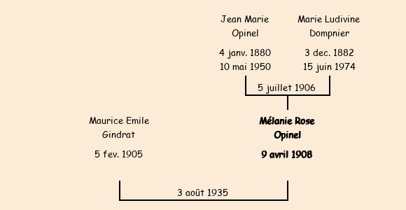 Mariée (27 ans) avec Maurice Emile Gindrat (30 ans) le 3 août 1935 à Fontcouverte |