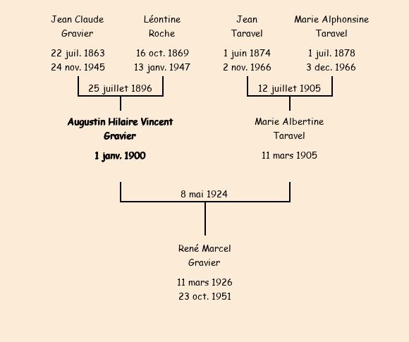 Epoux : Augustin Hilaire Vincent Gravier (24 ans, né à Saint Jean d'Arves le 1er janvier 1900, domicilié à Charvin, employé de chemin de fer), fils de Jean Claude et de Léontine Roche |