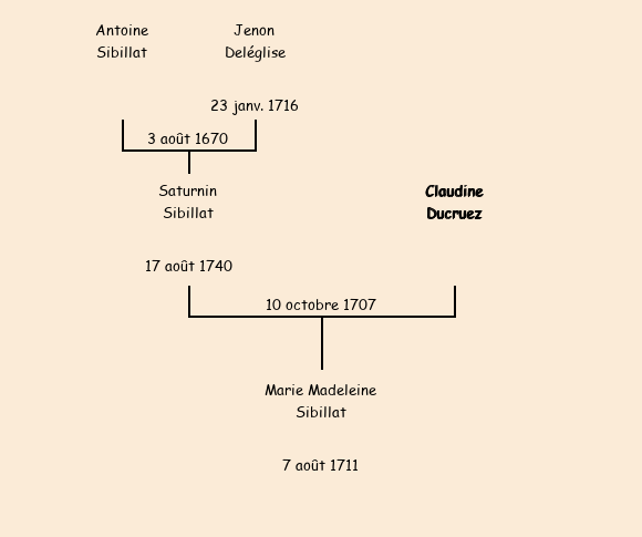 Epoux : Saturnin Sibillat (honorable), fils de Antoine (honorable, décédé) |