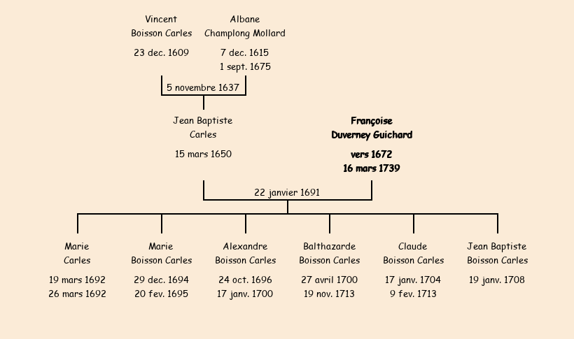 Françoise Duverney Guichard apparait dans la consigne des habitants de Fontcouverte pour l'année 1718. |