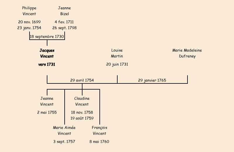 Absent de la fratrie. Créé car Jeanne Bizel veuve de Philippe Vincent est marraine d'un de ses enfants et Georges Vincent, parrain de cet enfant. 3 ans dans le recensement de 1734. |