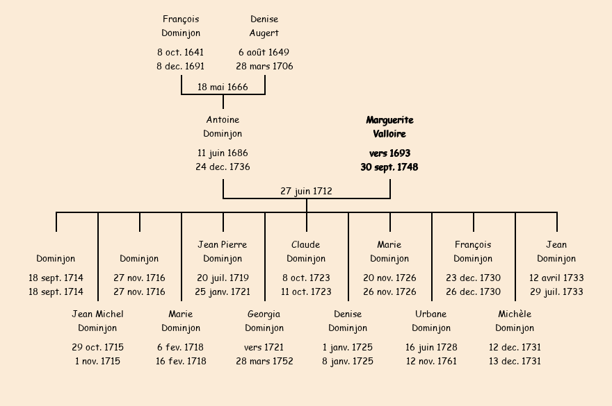 Marguerite Valloire apparait dans le recensement de la population de 1716. |