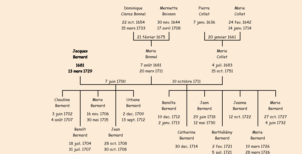 Marié (30 ans) avec Marie Collet (28 ans) le 19 octobre 1711 à Fontcouverte ![]() |