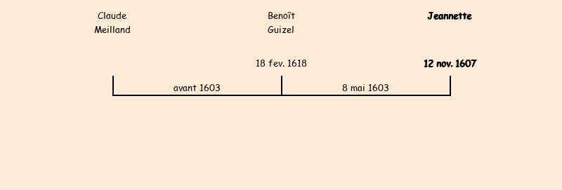 Remarques : Mariage de Benoit Guizel en 1603 et avec une autre Jeannette en 1609 |