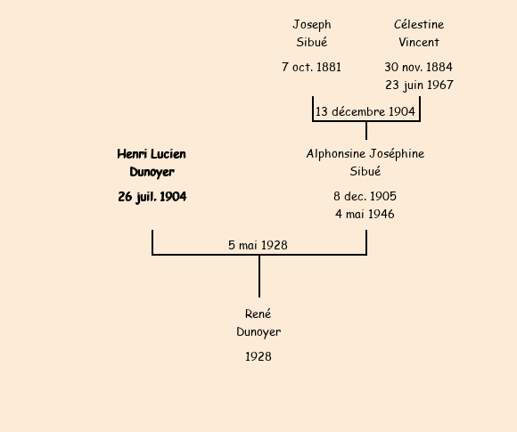 Epoux : Henri Lucien Dunoyer (23 ans, né à Césarches (Savoie) le 26 juillet1904, domicilié à Césarches), fils de Jérome François et de feue Marie Louise Billiet |