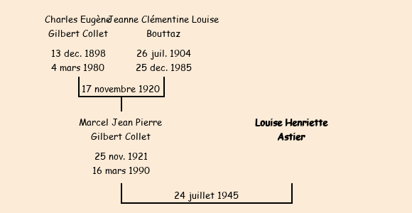 Mariée avec Marcel Jean Pierre Gilbert Collet (23 ans) le 24 juillet 1945 à Saint-Jean-de-Maurienne |