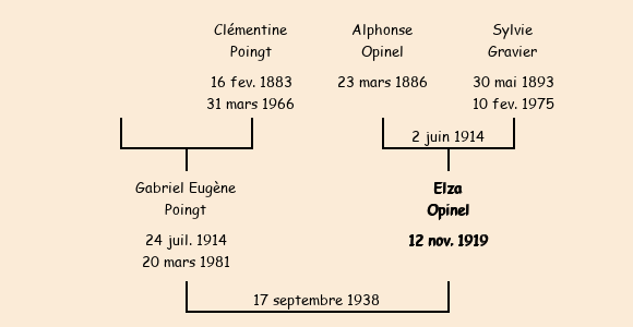 Mariée (18 ans) avec Gabriel Eugène Poingt (24 ans) le 17 septembre 1938 à Fontcouverte |