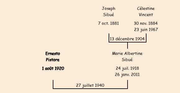 Epoux : Ernesto Pistore (19 ans, né le 1er août1920 à Villaga, ouvrier fumiste à Saint Jean de Maurienne), fils de Joseph (ouvrier d'usine à Saint Jean de Maurienne) et de feue Irène Valsiraldi |