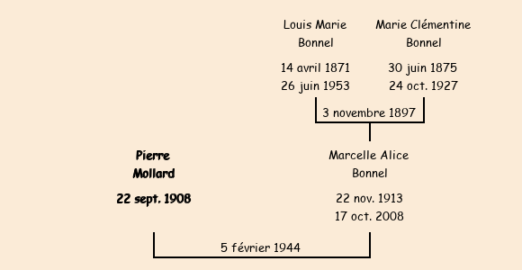 Epoux : Pierre Mollard (35 ans, né le 22 septembre1908 à Lépin le Lac canton de Pont de Beauvoisin, domicilié à Lépin le Lac), fils de Joseph et de Julie Françoise Guicherd |