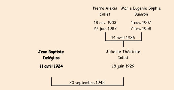 Epouse : Juliette Théotiste Collet (19 ans, née à Fontcouverte le 18 juin1929, de La Rochette), fille de Pierre Alexis et de Marie Eugénie Sophie Buisson |