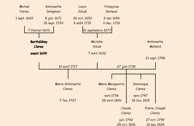 Barthélémy Claraz apparait dans le recensement des personnes de Fontcouverte et de leurs bestiaux de 1734 (absent). |