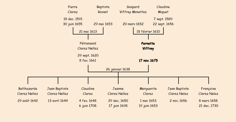 Mariée avec Pétremand Claraz Nellaz (17 ans) le 26 janvier 1638 à Fontcouverte ![]() |
