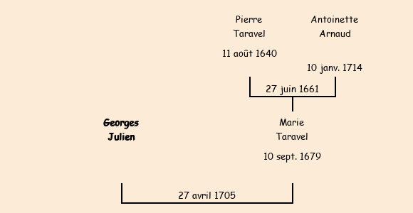 Acte de mariage de Georges Jullien avec Marie Taravel le 27 avril 1705