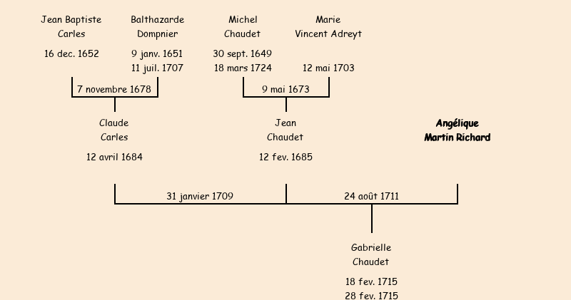 Epouse : Angélique Martin Richard (d'Hermillon, habitant Saint Jean depuis 18 ans,t veuve de Claude Boisson Carles), fille de feu Hugon |