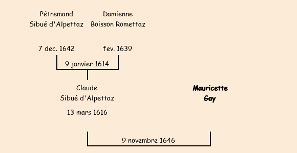 Acte de mariage de Mauricette Gay avec Claude Sibué d'Alpettaz le 9 novembre 1646