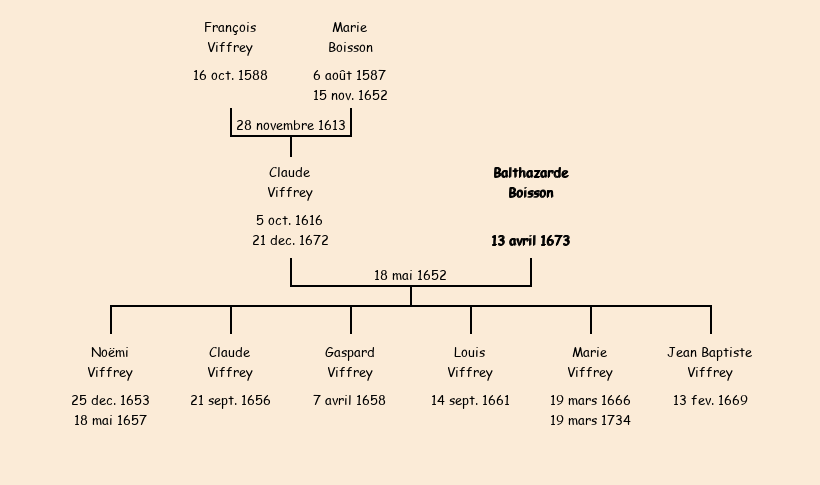 Epouse : Balthazarde Boisson, fille de Colomban |