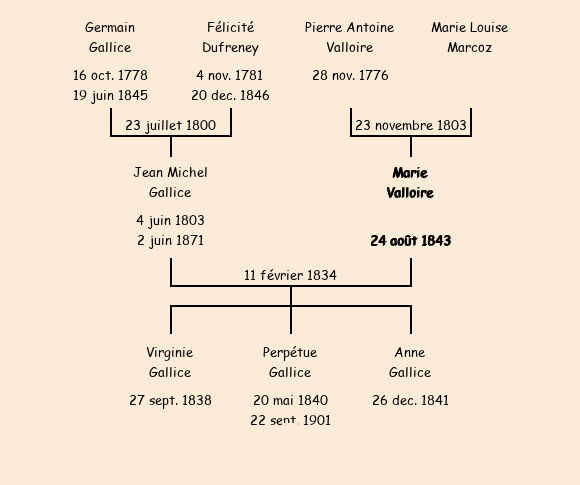 Mariée avec Jean Michel Gallice (30 ans) le 11 février 1834 à Saint-Jean-de-Maurienne |