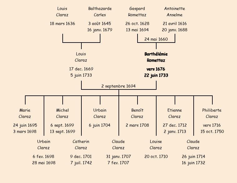 Epouse : Barthélémie Romettaz, fille de Gaspard (décédé ?) |