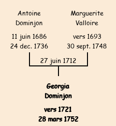 Georgia Dominjon apparait dans la consigne du sel pour l'année 1734. |