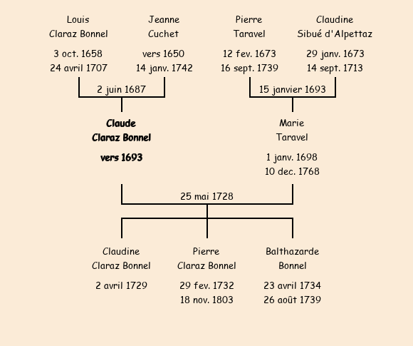 Claude Claraz Bonnel apparait dans la consigne des mâles de 1713. |