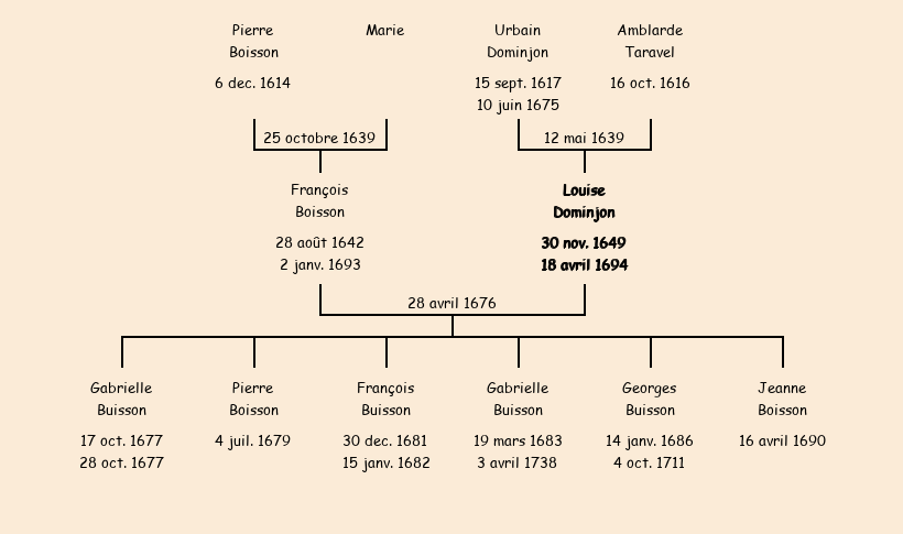 Mariée (26 ans) avec François Boisson (33 ans) le 28 avril 1676 à Fontcouverte ![]() |